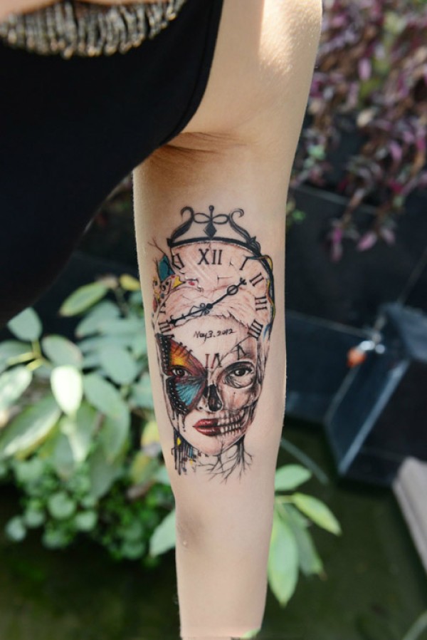 艺术肖像时间表手臂纹身图片