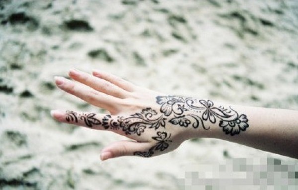 女生玉手上超漂亮花藤纹身图案