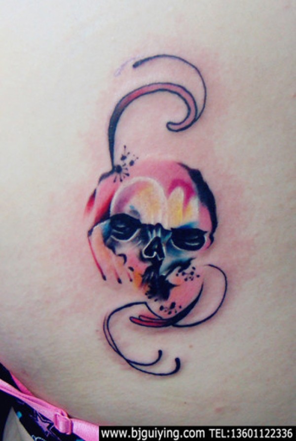 侧腰女骷髅刺青图案图片_骷髅纹身图案大全_纹身图吧