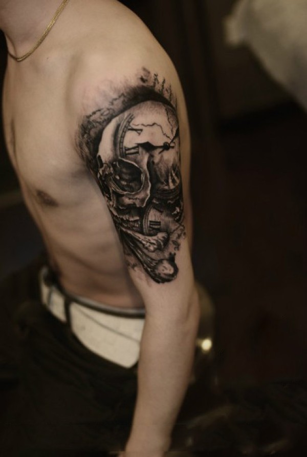 个性手臂悲伤的骷髅纹身图案图案图片_骷髅纹身图案大全_纹身图吧