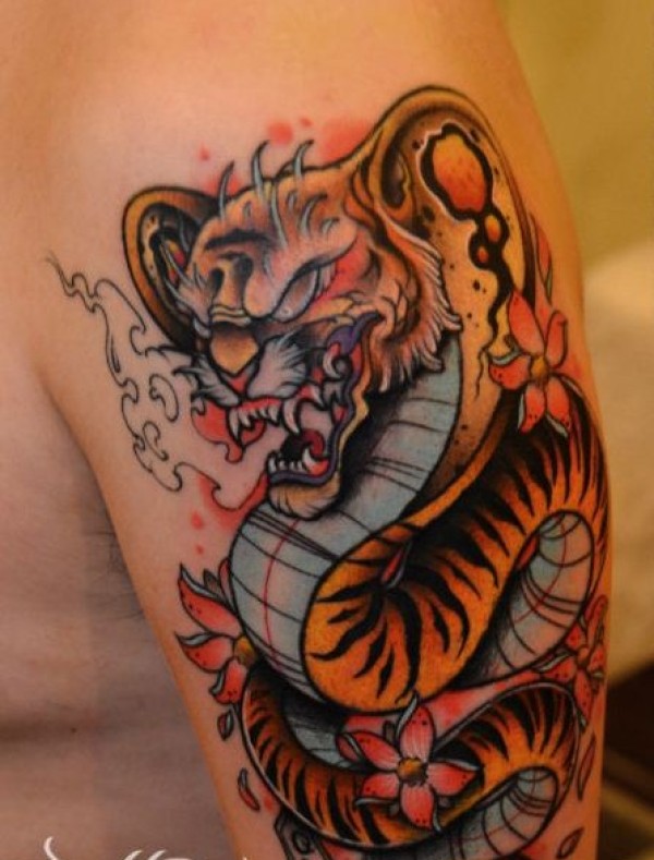 手臂莲花蛇纹身图案_臂部纹身图案大全_纹身图吧