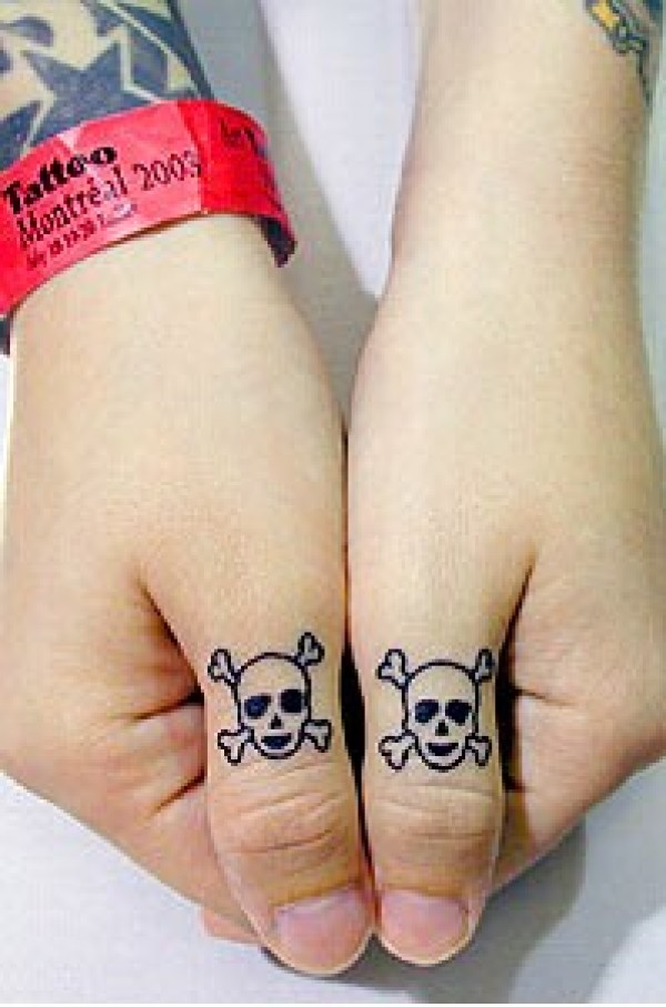 美女手部大拇指奇怪的小骷髅头纹身图图片