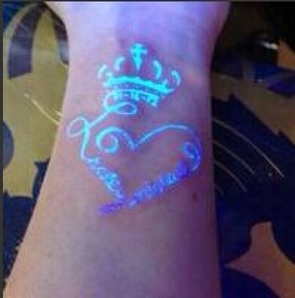 手部最时尚的荧光皇冠爱心纹身图图片