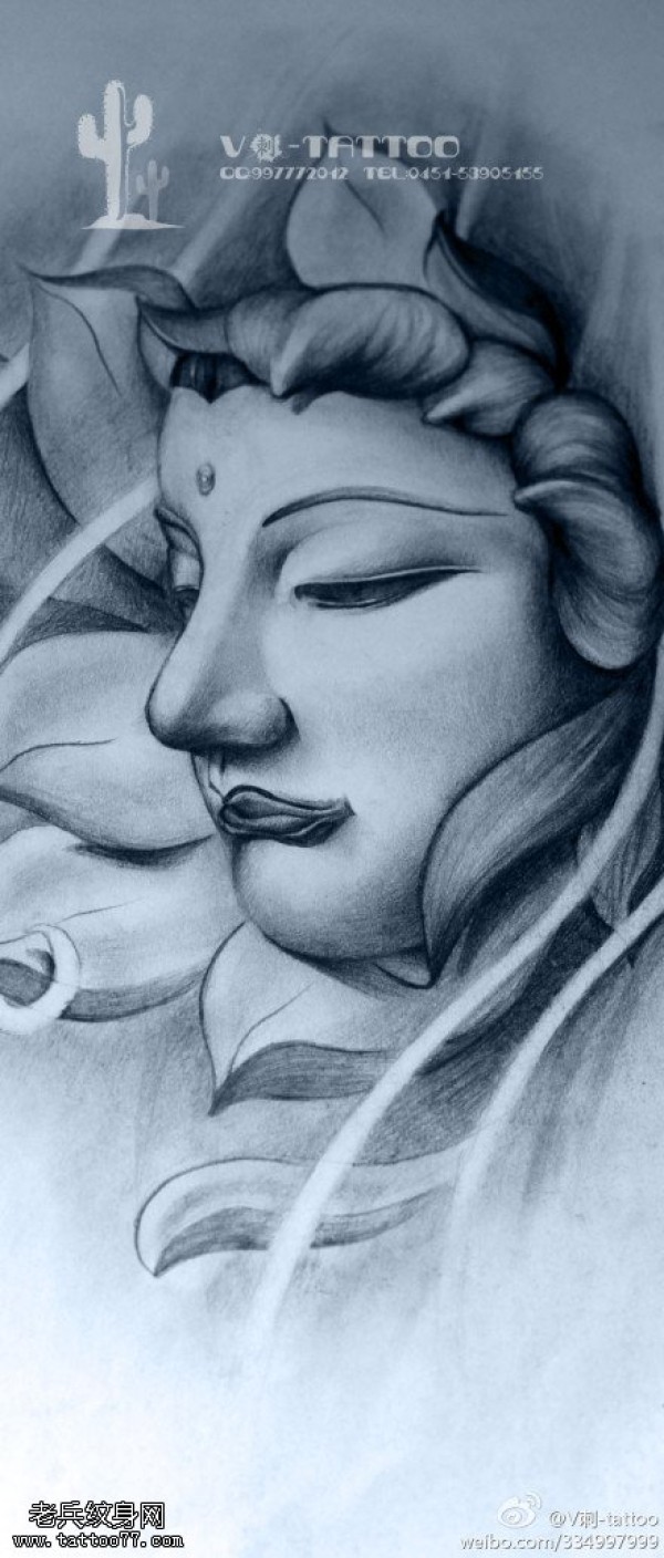静谧端庄佛纹身图案手稿