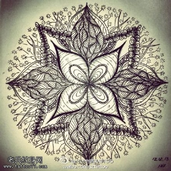 曼陀罗点刺梵花_100张曼陀罗点刺梵花纹身手稿图案