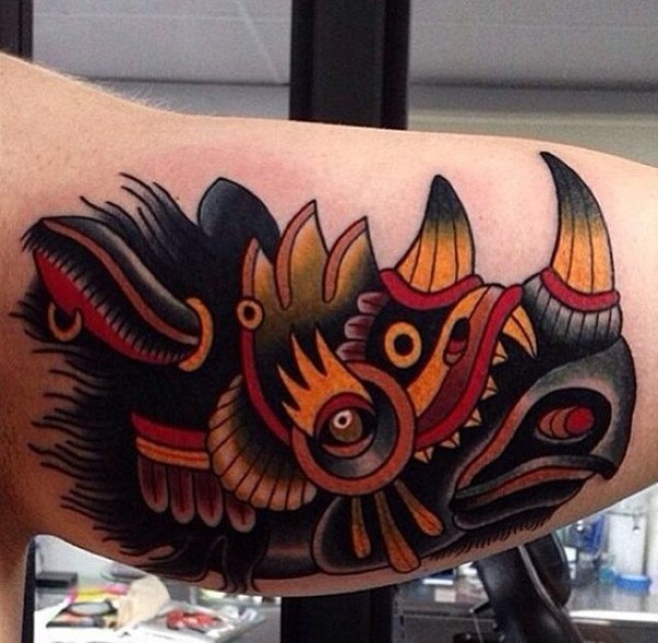 分享一款手臂school犀牛纹身