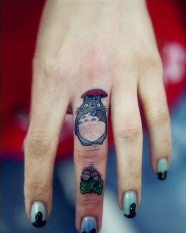 手指卡通龙猫纹身图案