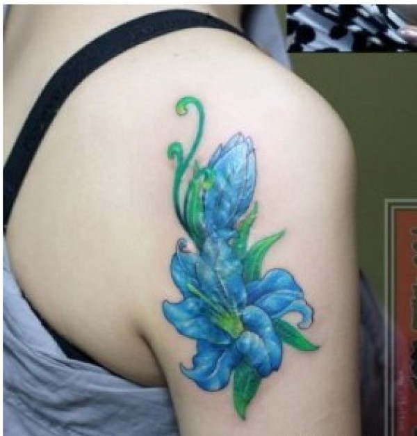 后肩唯美花藤英文图案图片_植物纹身图案大全_纹身图吧