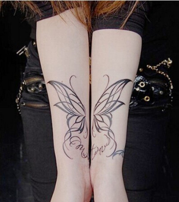 双胞胎姐妹手部唯美花蝴蝶纹身图图片