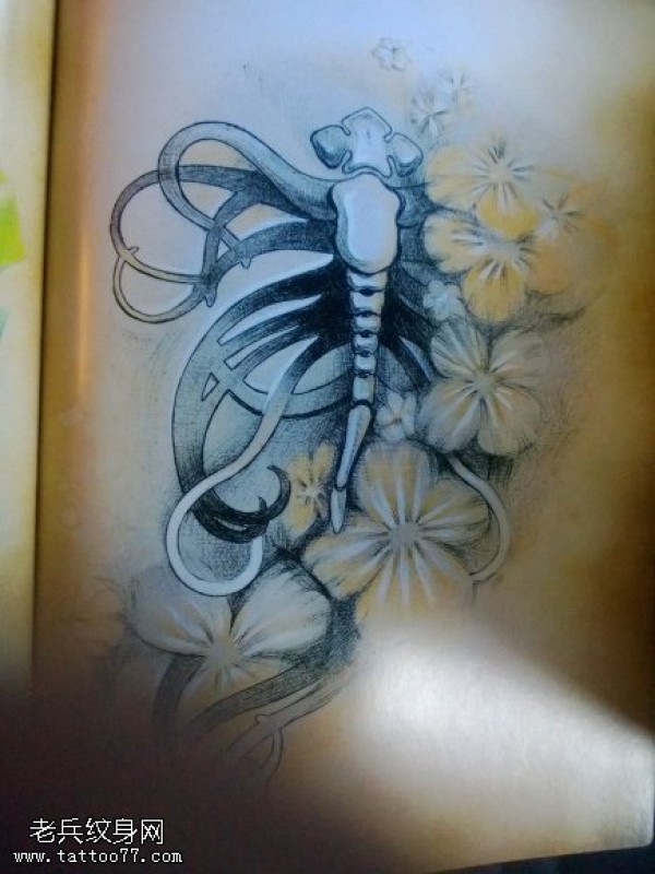 一款花卉纹身图案