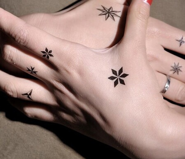 女生手部六角星星唯美纹身图片