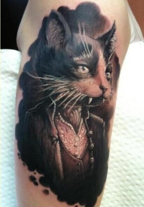 给大家欣赏一款个性手臂猫纹身图作品图片