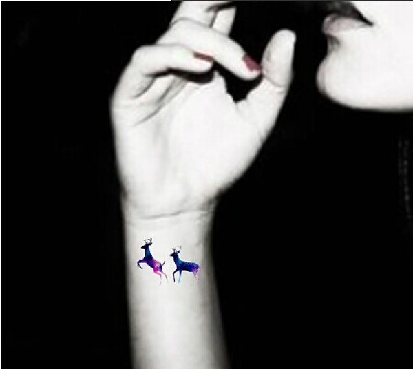 欧美美女手部漂亮唯美的小鹿纹身图图片