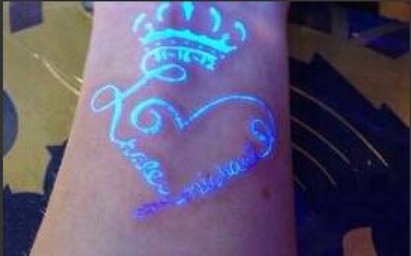 手部精美漂亮的荧光心型皇冠纹身图手图片