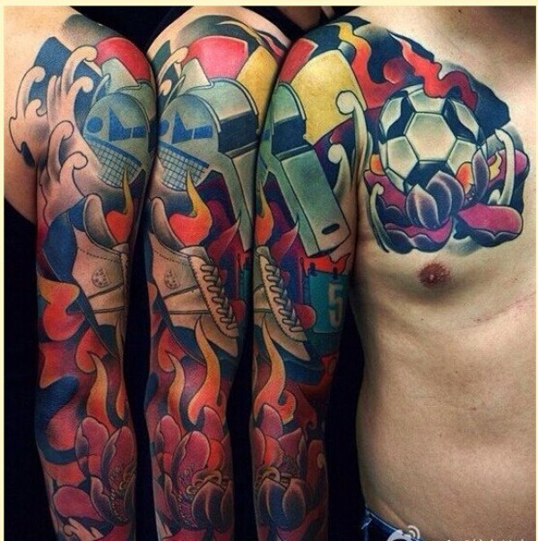 school花臂纹身--一组漂亮的school风格的花臂纹身图案作品