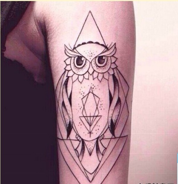 女生手臂个性猫头鹰纹身图案欣赏图片