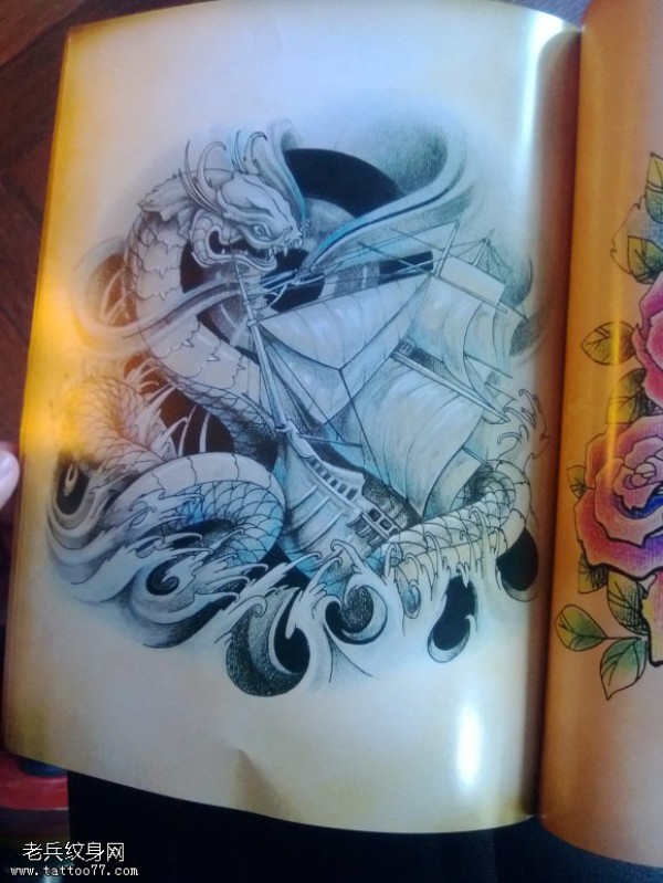 龙纹身手稿_一组老传统黑灰龙手稿纹身图案