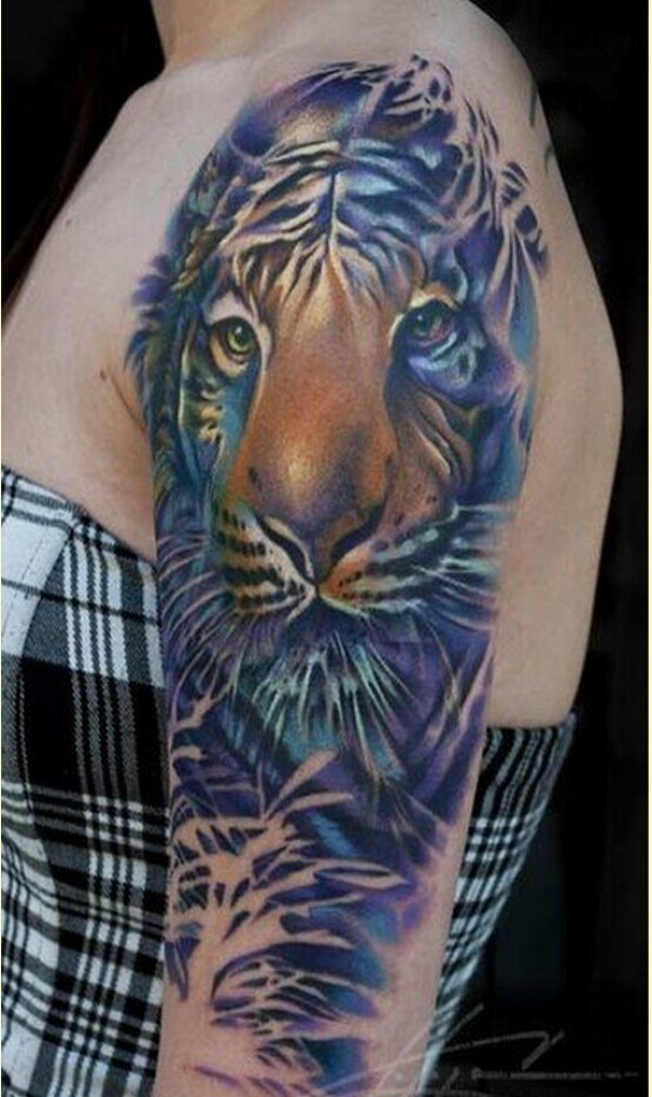 女生大臂时尚个性老虎纹身图案