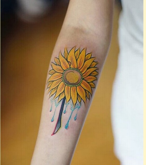 时尚女生手臂漂亮彩色向日葵纹身图案