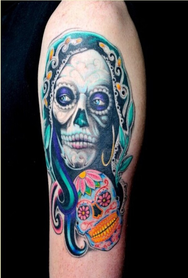 时尚手臂个性欧美彩色骷髅纹身图案