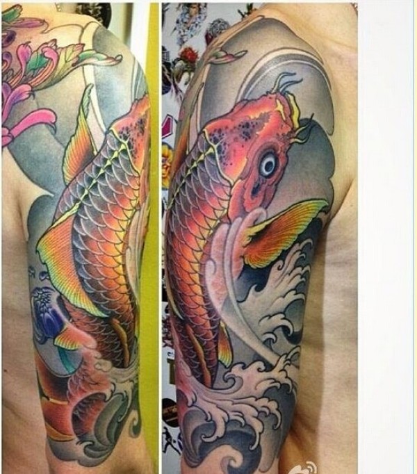 一款个性手臂鲤鱼纹身图案分享图片