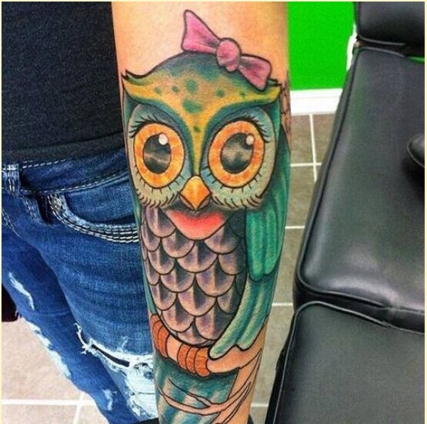 个性手臂时尚漂亮猫头鹰纹身
