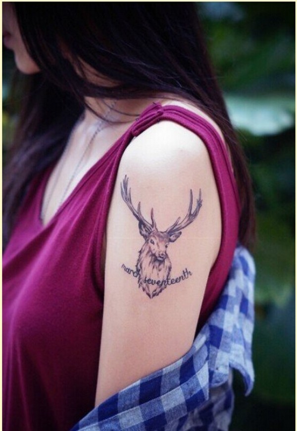 时尚女生手臂黑灰羚羊字母纹身图片图片
