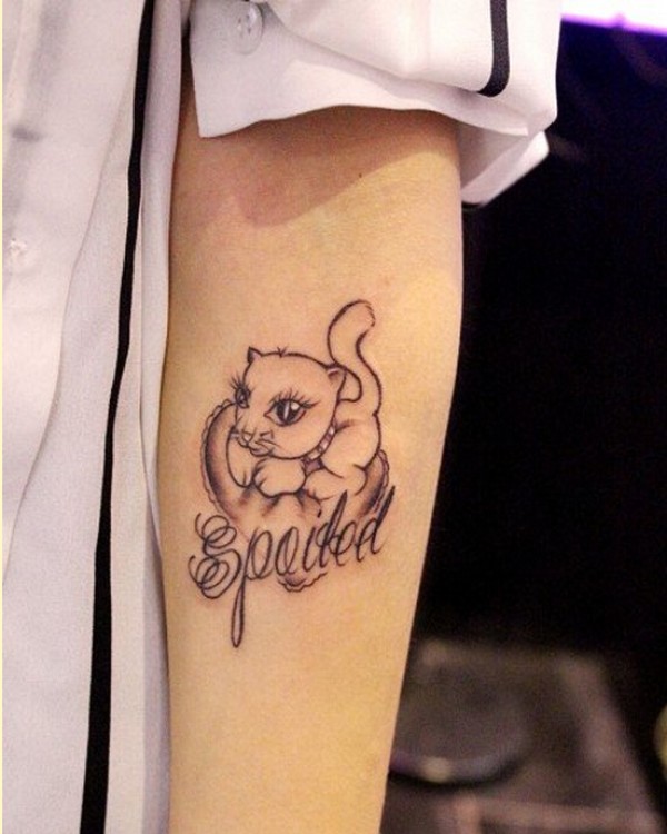时尚手臂漂亮好看的猫咪字母纹身图案