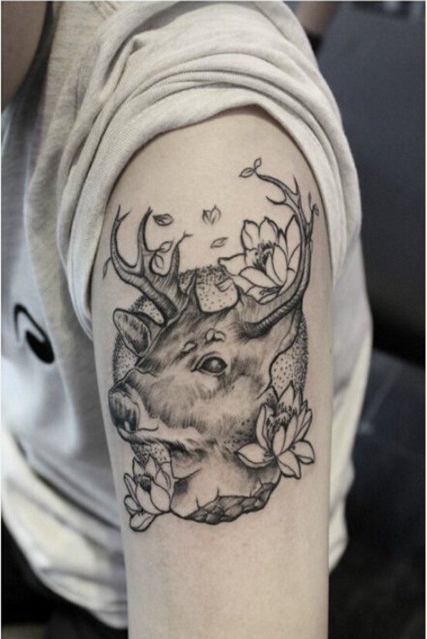 时尚手臂好看的黑灰羚羊纹身图案分享图片