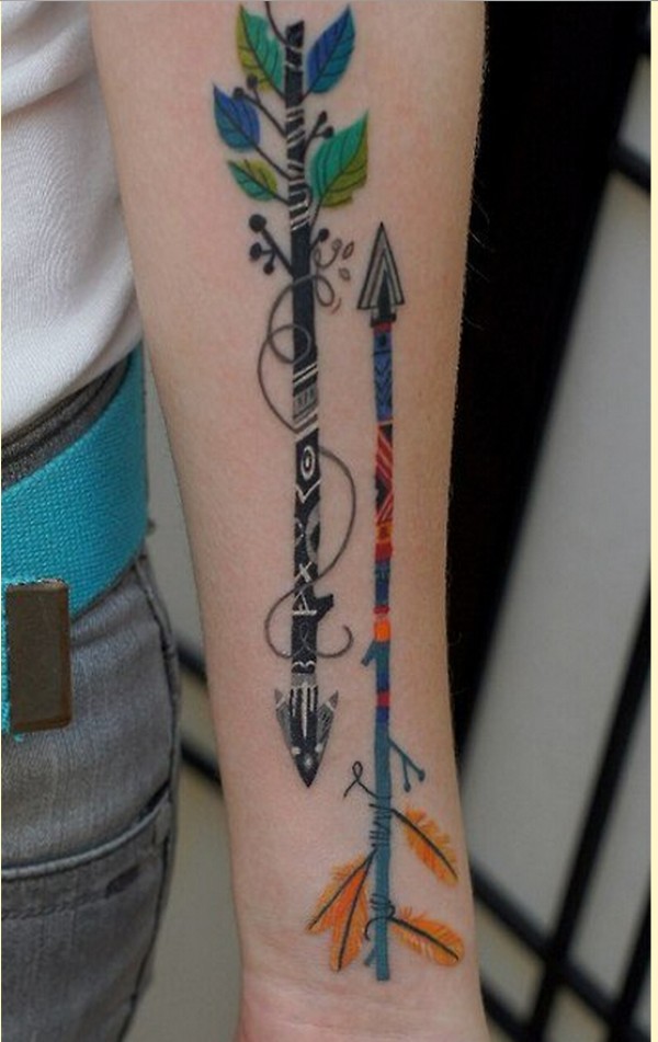 漂亮手臂好看的彩色箭头纹身图片欣赏图片