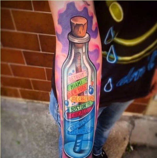 手臂一款彩色蘑菇纹身图案_臂部纹身图案大全_纹身图吧