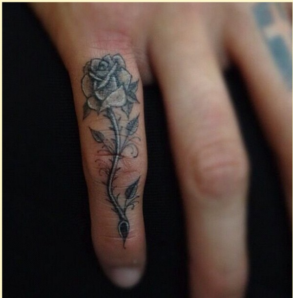 时尚漂亮手指玫瑰花纹身图案欣赏图片