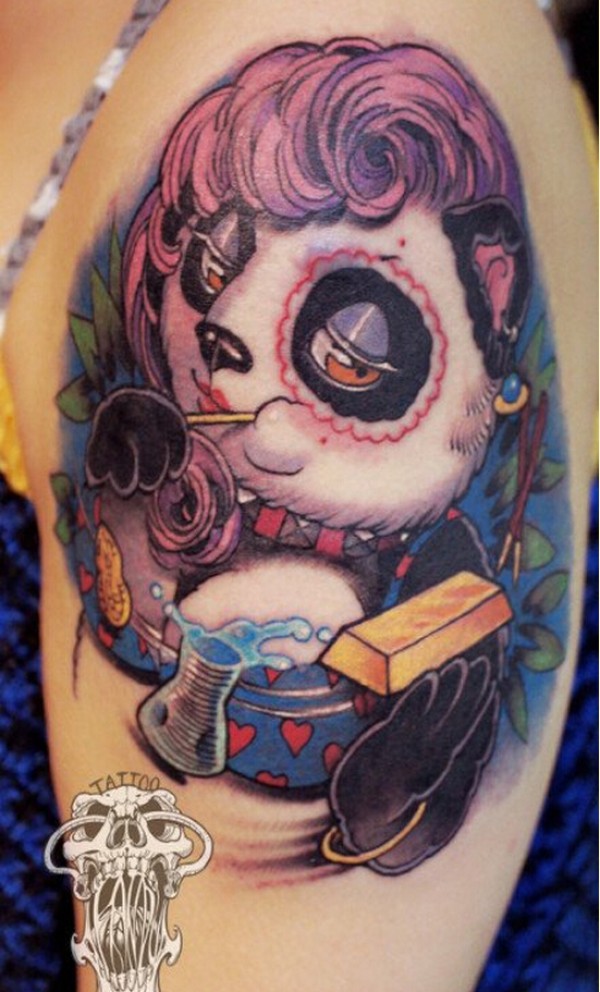 时尚女生手臂好看的大熊猫纹身图案