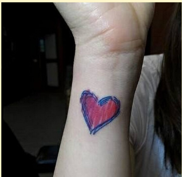 时尚女生手腕漂亮彩色小清新爱心纹身图片