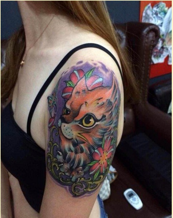 个性女生手臂漂亮好看的彩色狗狗纹身图片