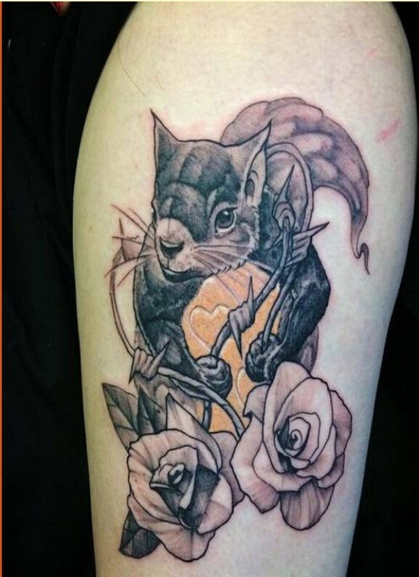 时尚手臂个性好看的老鼠玫瑰花纹身图图片