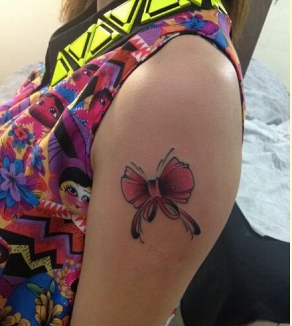 女孩子手臂时尚漂亮的蝴蝶结纹身图案