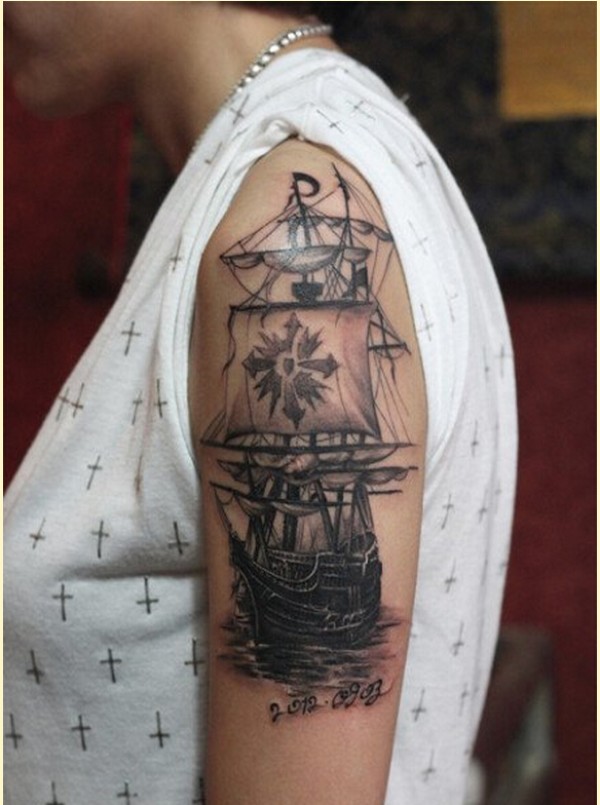 个性手臂时尚好看的帆船纹身图案