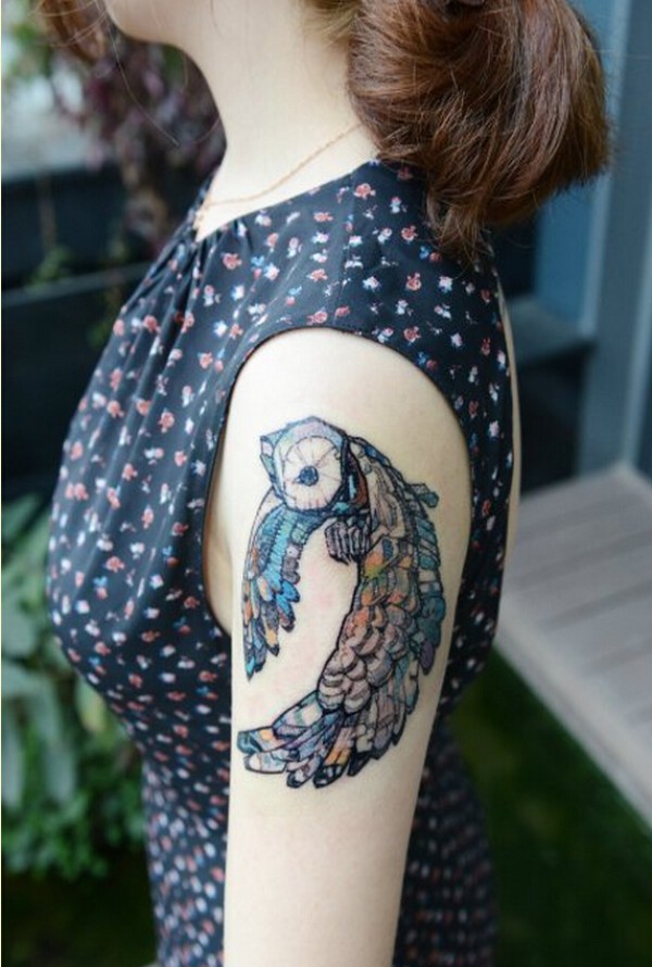女生手臂漂亮好看的彩色猫头鹰纹身图图片