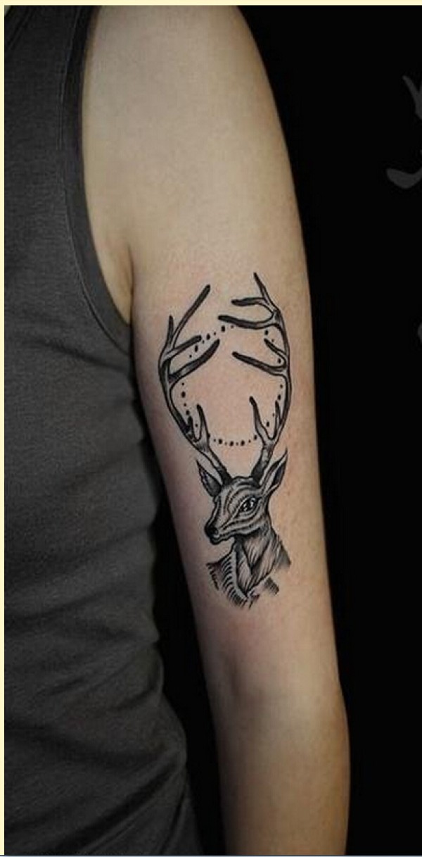 时尚个性胳膊好看的羚羊纹身图案 图片