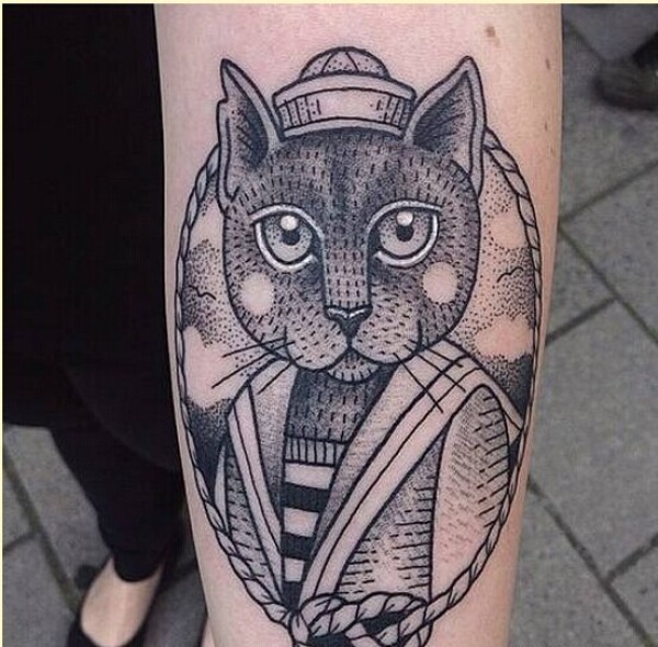 时尚手臂个性点刺猫纹身图案欣赏图片