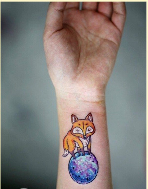 女生手腕漂亮好看的彩色星空狐狸纹身图片