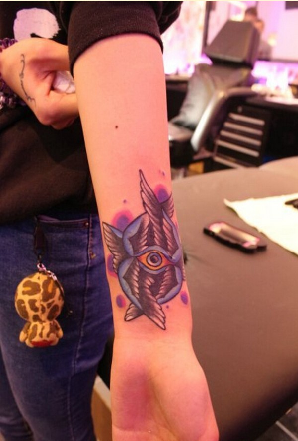 个性手臂时尚好看的翅膀眼睛纹身图案