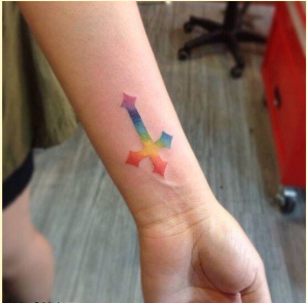 女生漂亮手腕好看的彩色十字架纹身图图片