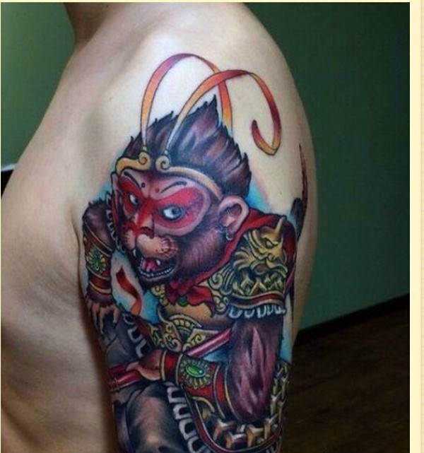 个性时尚大臂彩色孙悟空纹身图案
