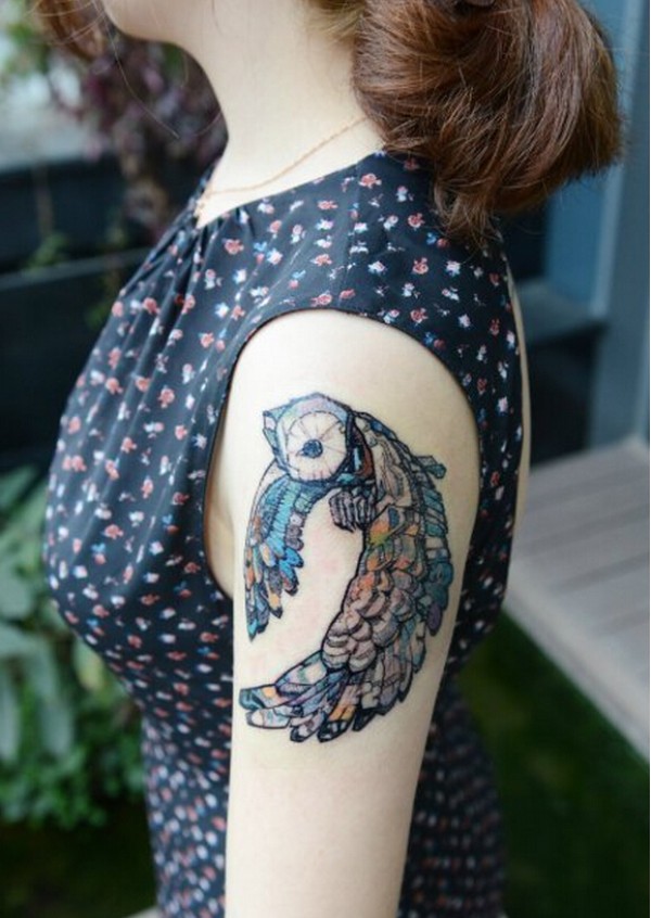 女生手臂时尚好看的彩色猫头鹰纹身图图片