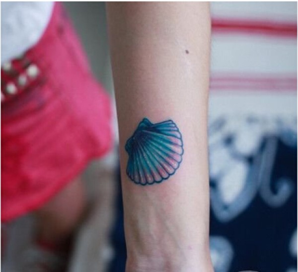 女孩子手臂唯美好看的彩色小贝壳纹身图片