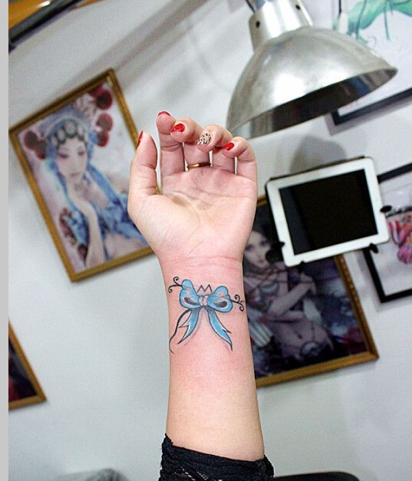 时尚手部漂亮好看的蝴蝶结纹身图案 图片