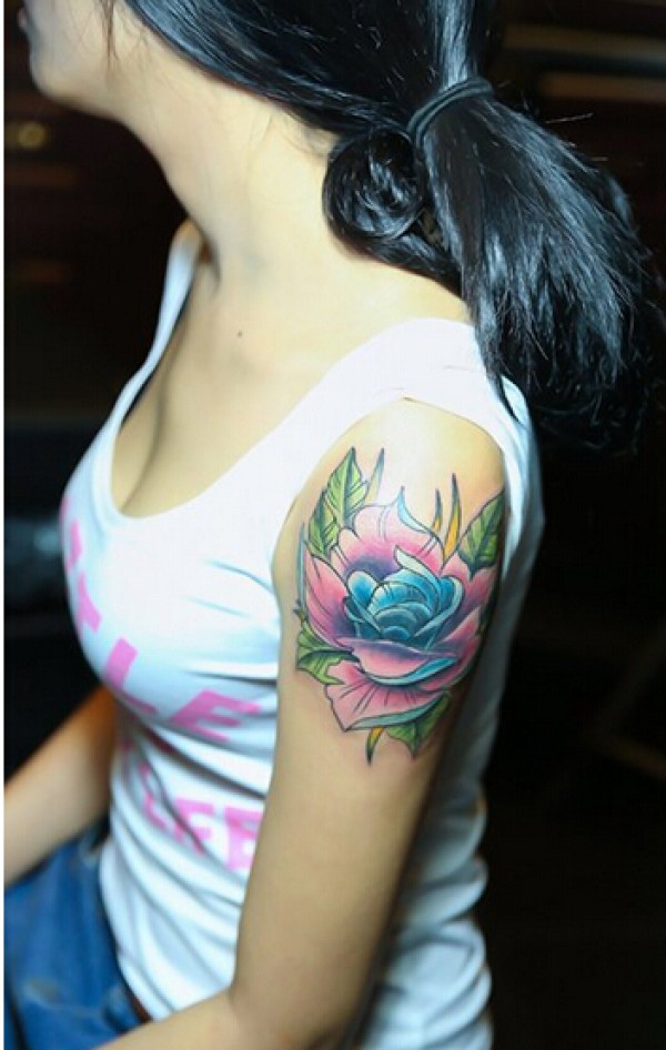 个性时尚大臂漂亮好看的玫瑰花纹身图图片