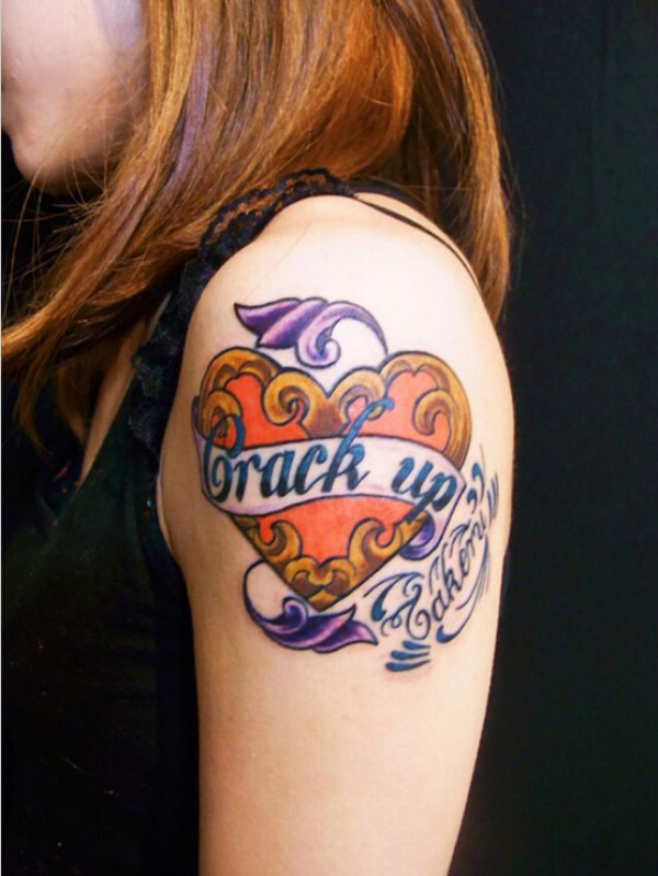 女孩手臂上唯美好看的丝带心形纹身图图片